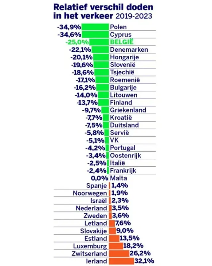 "Admittedly, we have come a long way. Five and ten years ago, there were many more road deaths in Belgium than the European average. Compared to Scandinavia and Western European countries such as the Netherlands, Spain and Germany, we scored very poorly. In 2019, 56 people per million inhabitants died in traffic.